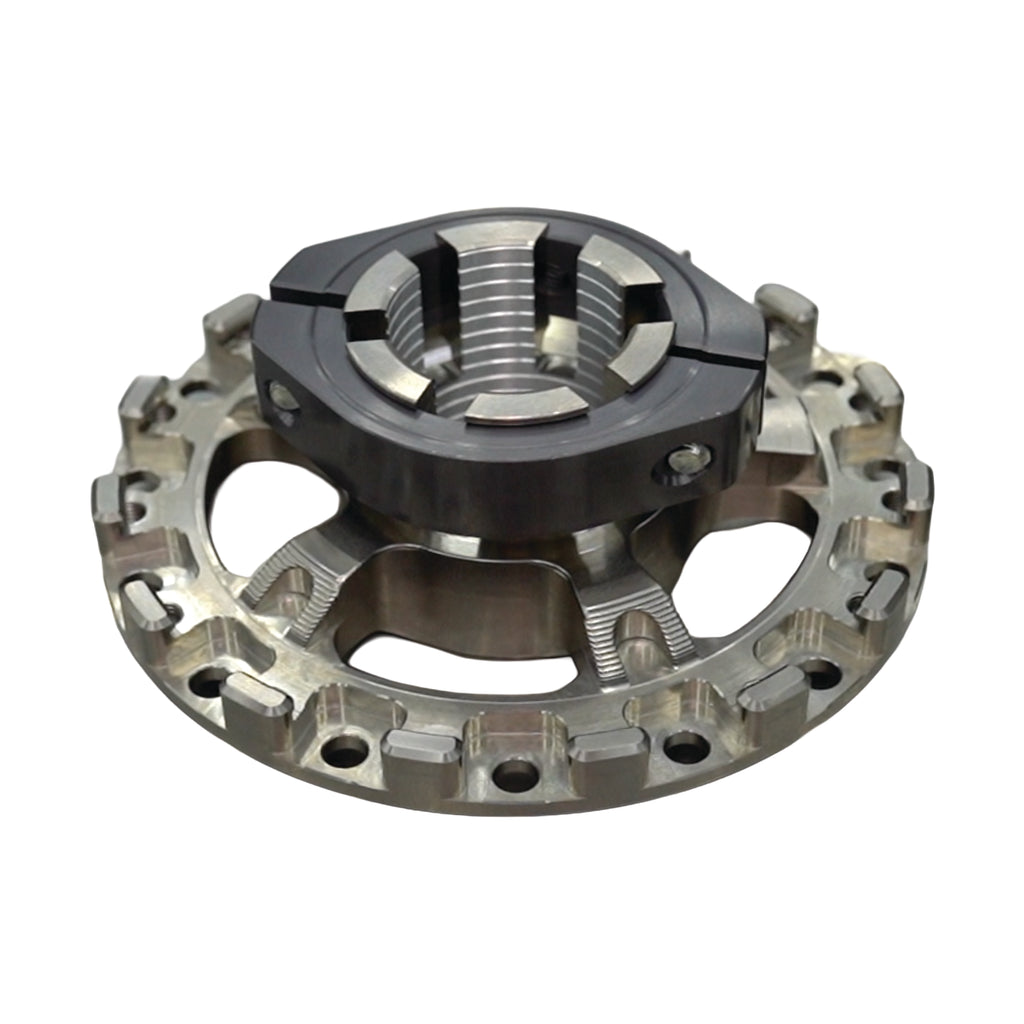 By increasing the number of tooth-drive engagement points from 6 to 15, durability and operational precision have been improved. In addition, a retainer-ring sprocket locking system has been adopted. By eliminating the use of bolts entirely, weight has been significantly reduced. Compatible with standard magnesium counterparts, lighter than other floating carrier in the market, and attachment/removal has been simplified, resulting in shorter working time on kart on a busy race day.